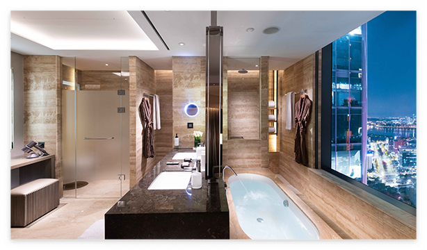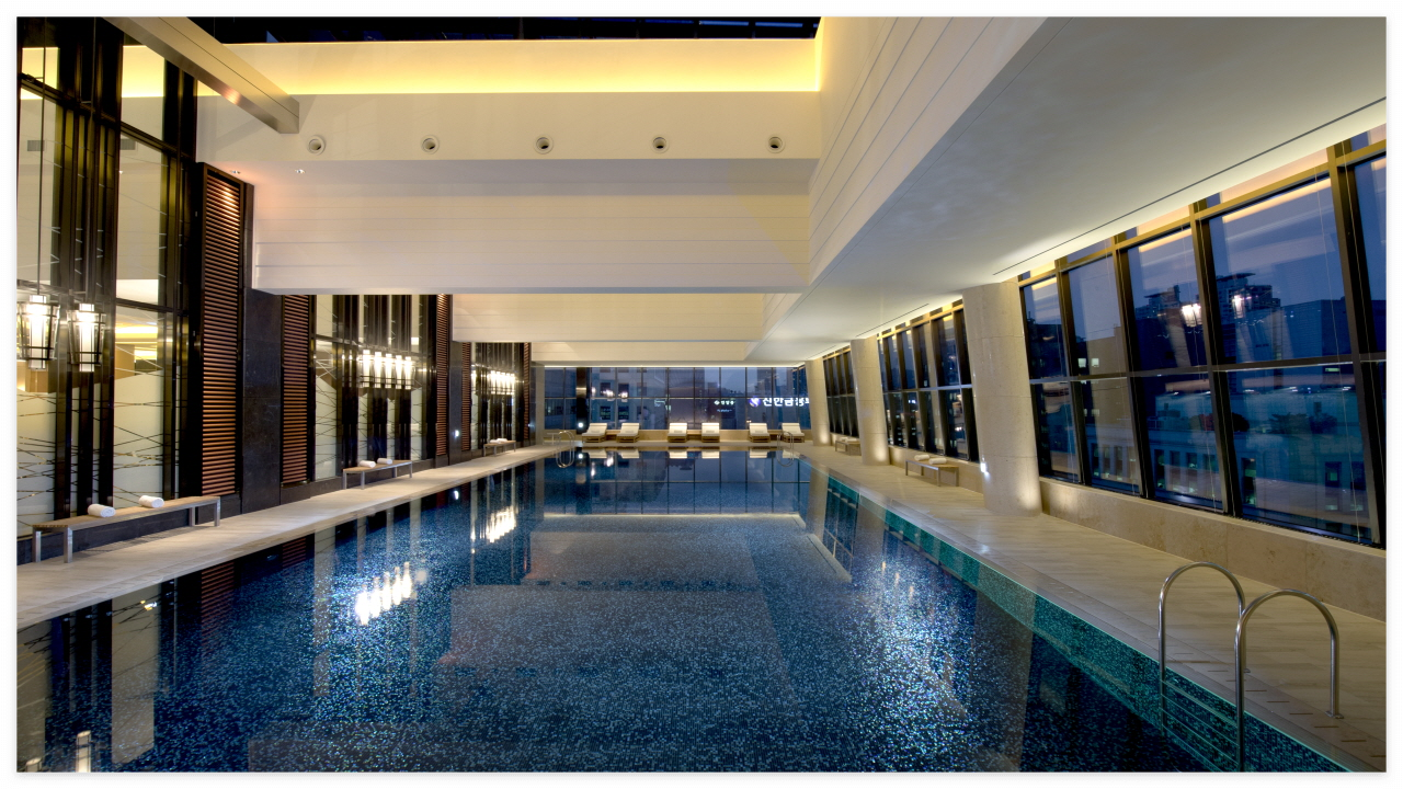 - 수영장 : 사방이 유리창으로 되어 있어 멋진 도심뷰를 볼 수 있는 공간으로 풍부한 햇살 속에서 즐겁게 수영을 즐길 수 있습니다. 길이는 총 25미터입니다.