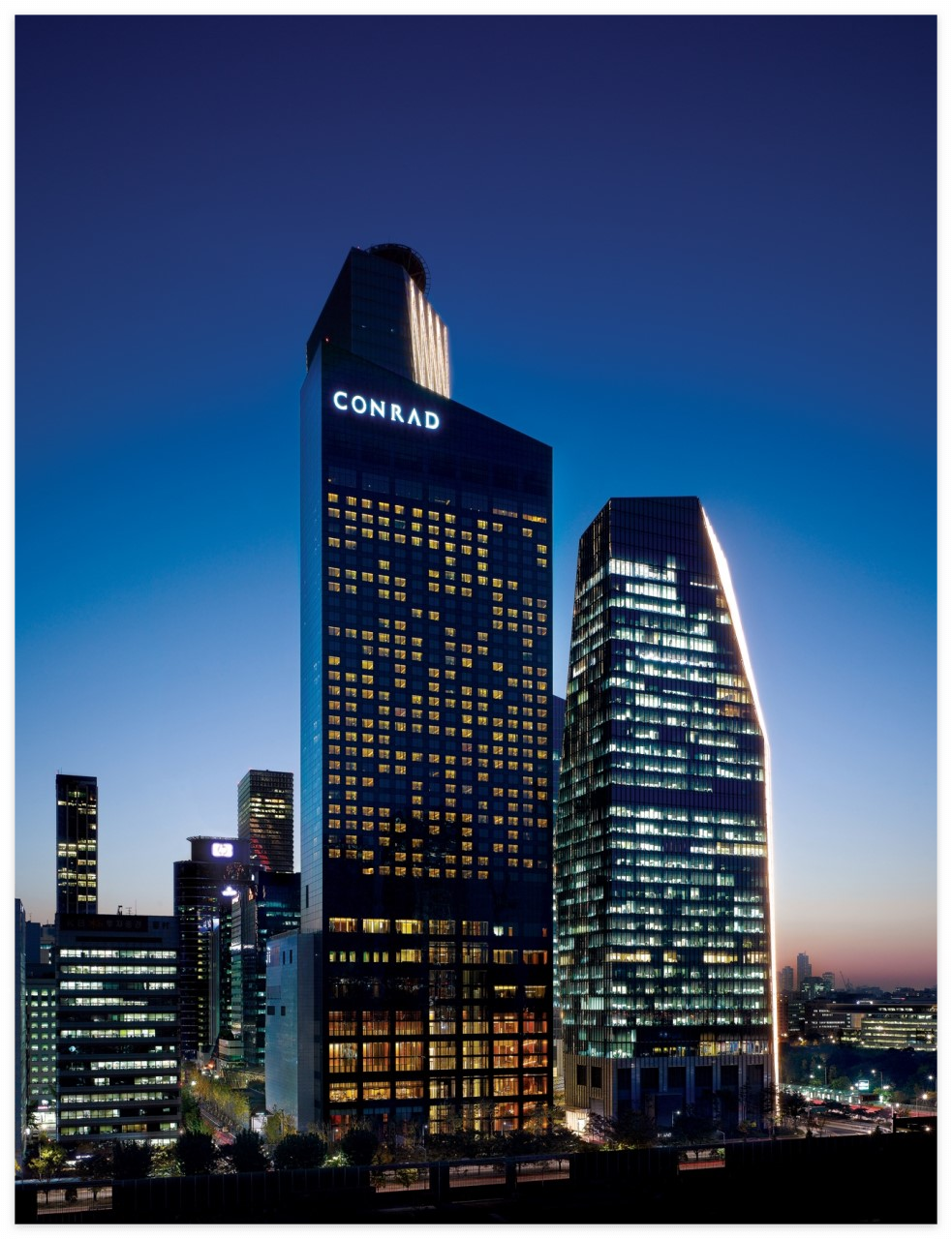 여의도에 자리하고 있는 콘래드호텔은 5성급 호텔로 2008년 공사를 시작, 2012년에 개관한 하였습니다. 지하 7층, 지상 37층 규모로 434개의 객실이 마련되어 있죠. 내부에는 수영장, 체련장, 골프연습장 등의 피트니스 시설도 갖추고 있으며 다양한 다이닝 공간도 준비되어 있어 숙박부터 식사, 휴식, 모임 그리고 운동까지 즐기며 즐거운 일상을 보내실 수 있습니다.