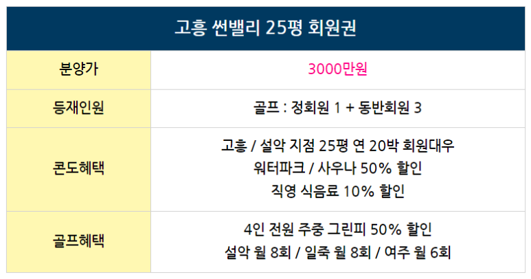 고흥 썬밸리cc 회원권은 25평과 34평 두가지입니다.