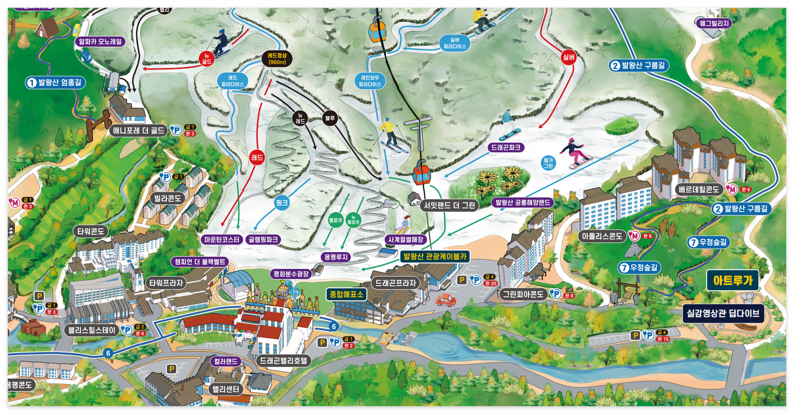 | 드래곤밸리 | 타워 / 빌라 / 그린피아 | 용평콘도 / 베르데힐 / 버치힐 버치힐테라스 / 포레스트 / 아폴리스 |