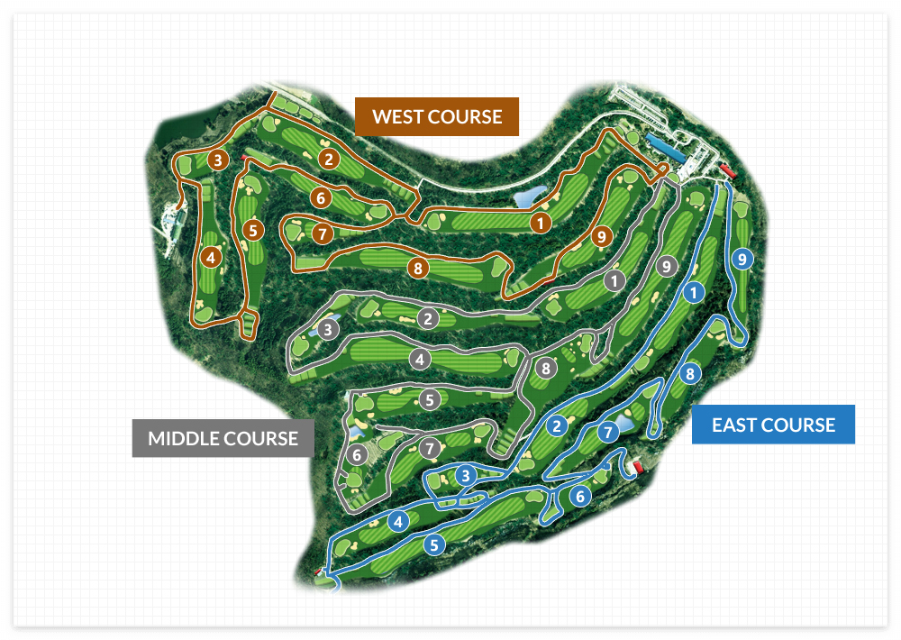 - 블루원용인cc회원권 코스는 구봉산 자락의 산악 지형을 최대한 반영하여 설계된 코스로 매우 도전적이고 다이나믹한 재미가 있습니다. 웨스트 / 이스트 / 미들 세가지로 구성되어 있는데요. 전장이 시야에 대부분 들어오겠금 트여있고 넓어서 티샷하는 재미가 쏠쏠합니다. 그린은 살짝 언듈레이션이 있어 경기 끝까지 긴장감을 주게 하죠.
