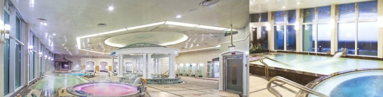 사우나는 지하 800미터 천연 암반수를 이용하는