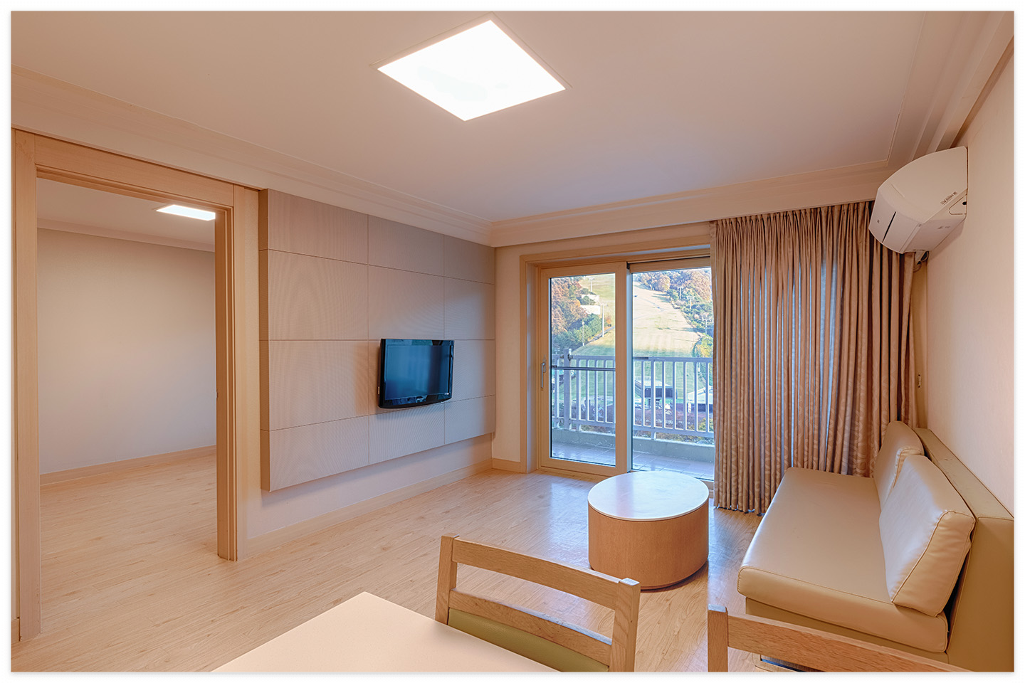 비발디파크에는 노블리안 객실도 있지만 대부분이 패밀리와 스위트로 조성되어 있습니다. 패밀리은 가장 작은 평형대로 원룸형 구조를 가지고 있는데요. 20평대라 2인이 숙박이 좋습니다. 그래서 커플이나 신혼부부가 이용하기 좋죠. 스위트는 30평형대로 투룸형 객실입니다. 거실과 침실이 분리되어 있는 형태로 한 가족이 투숙하기 좋습니다. 그래서 저도 비발디파크회원권 예약시 스위트로 많이 예약을 한답니다. ^^