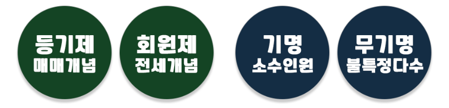 입회형태는 등기제(오너쉽)과 회원제(멤버쉽)
