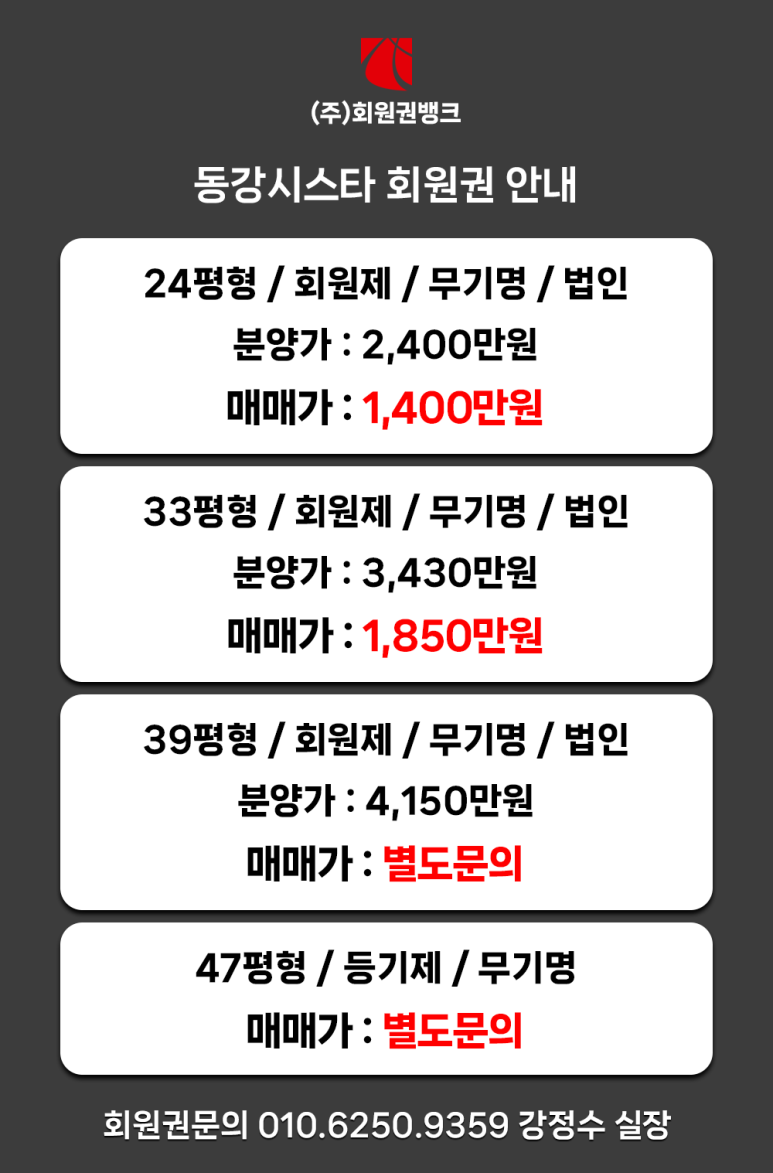 구성되어 있습니다. 회원권가격은 객실마다 다르며