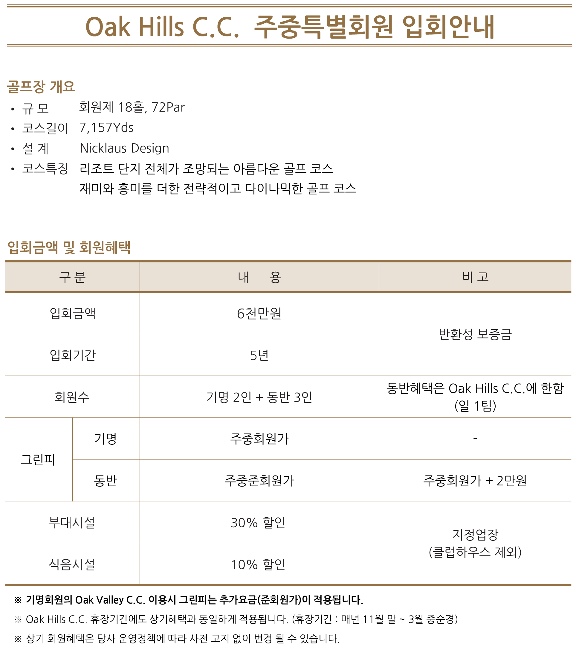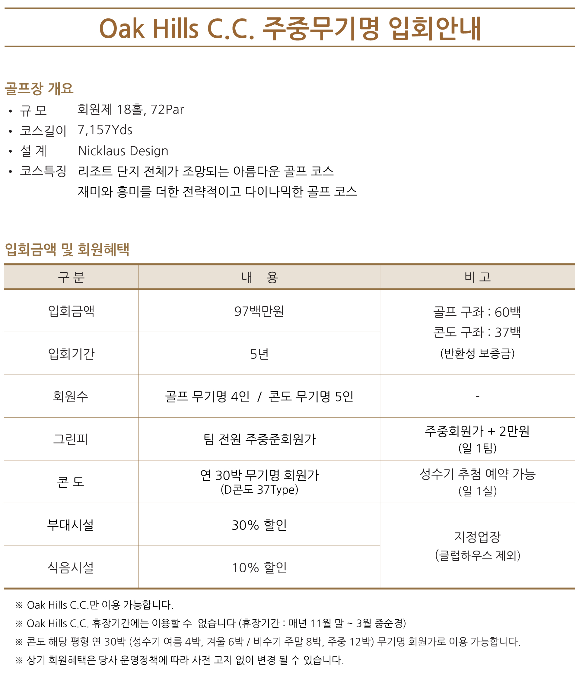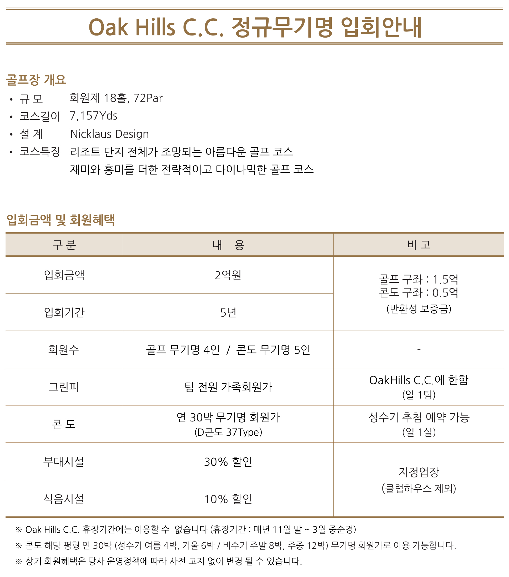 ◆ 오크힐스cc 신규 무기명 분양 안내 ◆