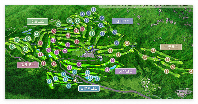1988년에 개장하여 역사가 시작되었는데요. 시작은 18홀이었고 이후 89년에 김해9홀을 추가 92년에 9홀을 또추가 2005년에는 회원제 9홀과 대중제 9홀까지 추가해서 모두 54개의 홀을 가지고 있는 큰규모의 골프장입니다. 국내에서 이만한 크기에 골프장은 몇 개 안되는 걸로 알고 있습니다. 이중에서 가야cc회원권 회원제코스는 45개홀입니다.